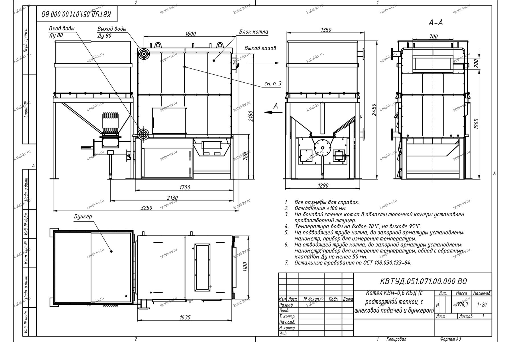 Конструкция автоматического котла на угле 0.6 МВт